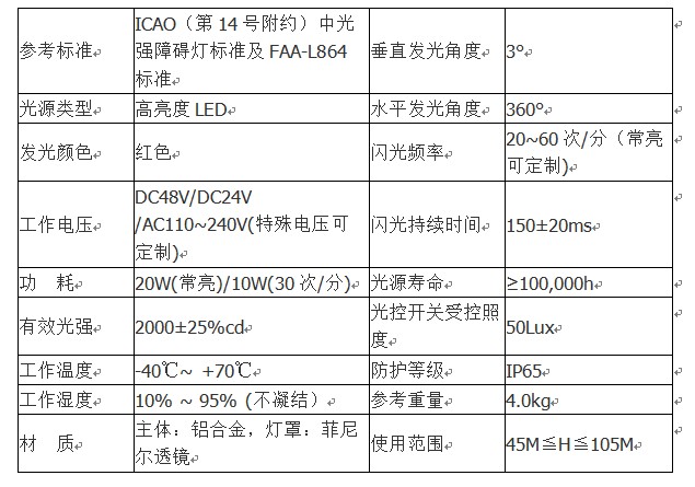 主要技術(shù)參數(shù)